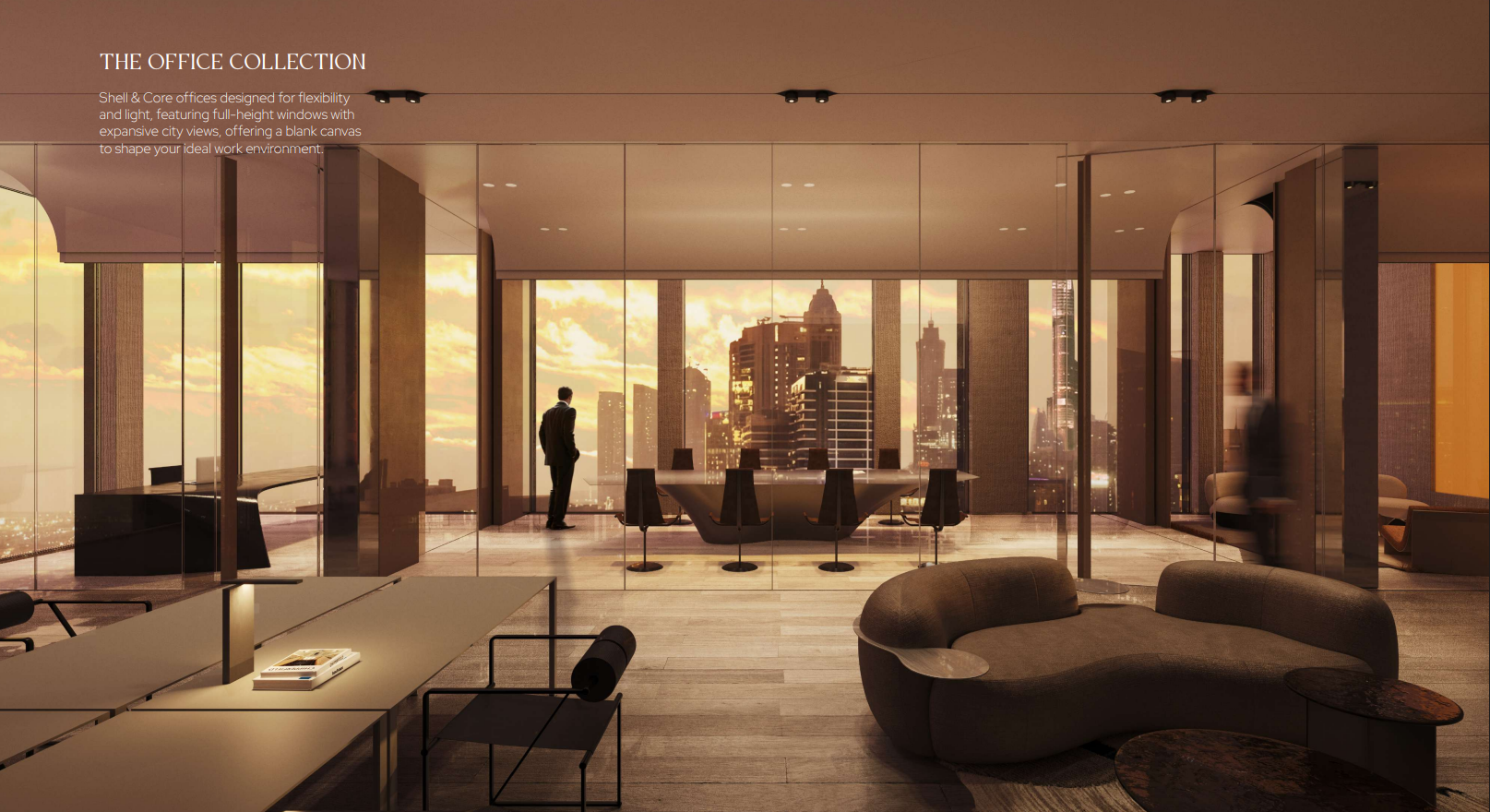 - Executive amenities including wellness spaces, members’ club areas, and refined dining zones